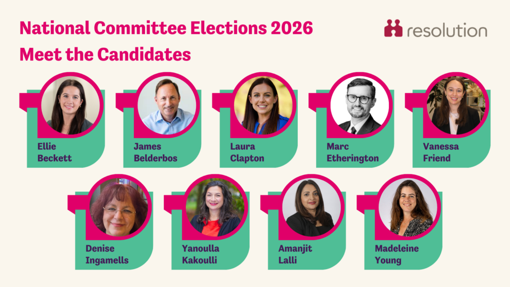 As part of National Committee you will play a key role in influencing and contributing to our plans to advise, direct, and support Resolution’s vision to retain existing members and attract future members, and to produce better outcomes for separating families and their children.